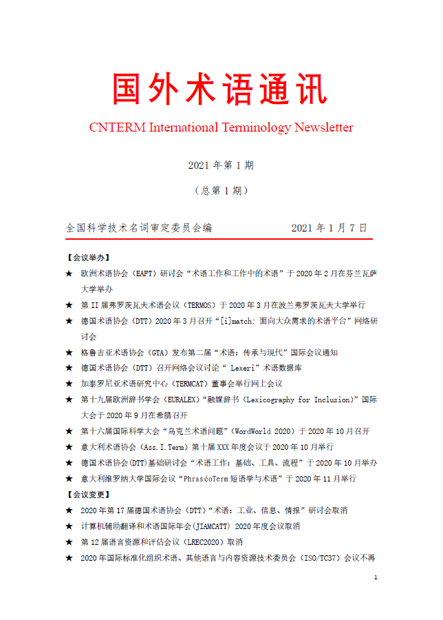 国外术语通讯(2021年第1期)