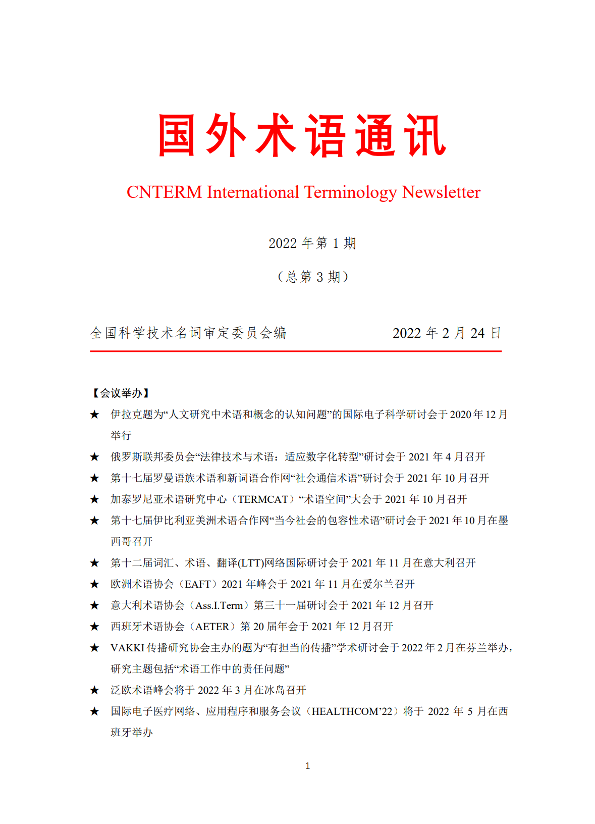 国外术语通讯(2022年第1期)