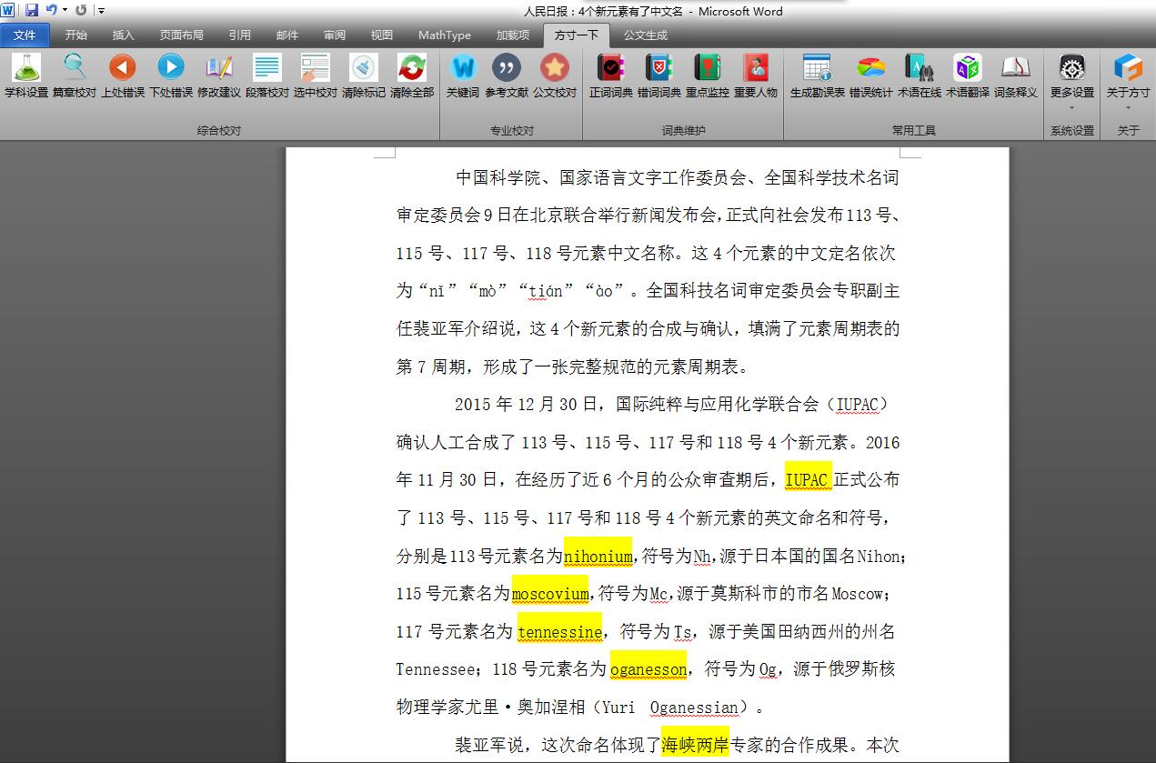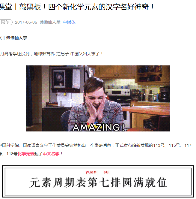 “字媒体发表《敲黑板!四个新化学元素的汉字名好神奇!》