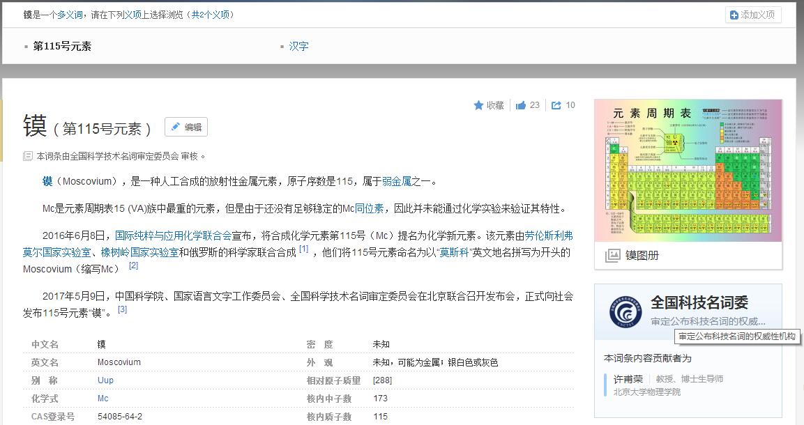 全国科技名词委与百度百科就此次四个新元素的推广开展合作,由全国科技名词委推荐专家,从专业性、完整性、科普性等角度审阅词条内容,保证质量。百度百科提供内容宣传平台,同时完善与新元素相关的扩展阅读知识。通过这样的合作模式,第一时间让公众了解新元素的规范中文名称以及相关知识。
