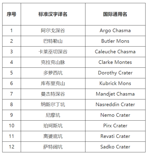 冥卫一“卡戎”第一批地名标准汉字译名公布