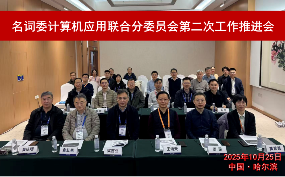 10月25日上午,第四届全国计算机科技名词审定委员会计算机应用联合分委会第二次工作推进会在哈尔滨举办,会议采用线上线下结合方式。虚拟现实与人机交互分委会主任委员王涌天教授、人工智能分委会顾问梁吉业教授、图形图像和多媒体分委会主任委员周昆教授、人工智能分委会顾问査红彬、黄萱菁教授,图形图像和多媒体分委会副主任委员黄庆明、黄华教授,虚拟现实与人机交互副主任委员田丰、王莉莉教授以及各分委会委员共同出席会议。全国计算机名词委秘书长林俊宇、副秘书长韩飞,全国科技名词委副编审余前帆参加会议。会议由林俊宇教授主持。