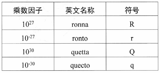 2022年11月,国际计量大会(CGPM)通过3号决议,决定在国际单位制(SI)中添加以下用于倍数和分数单位的词头,具体如下: