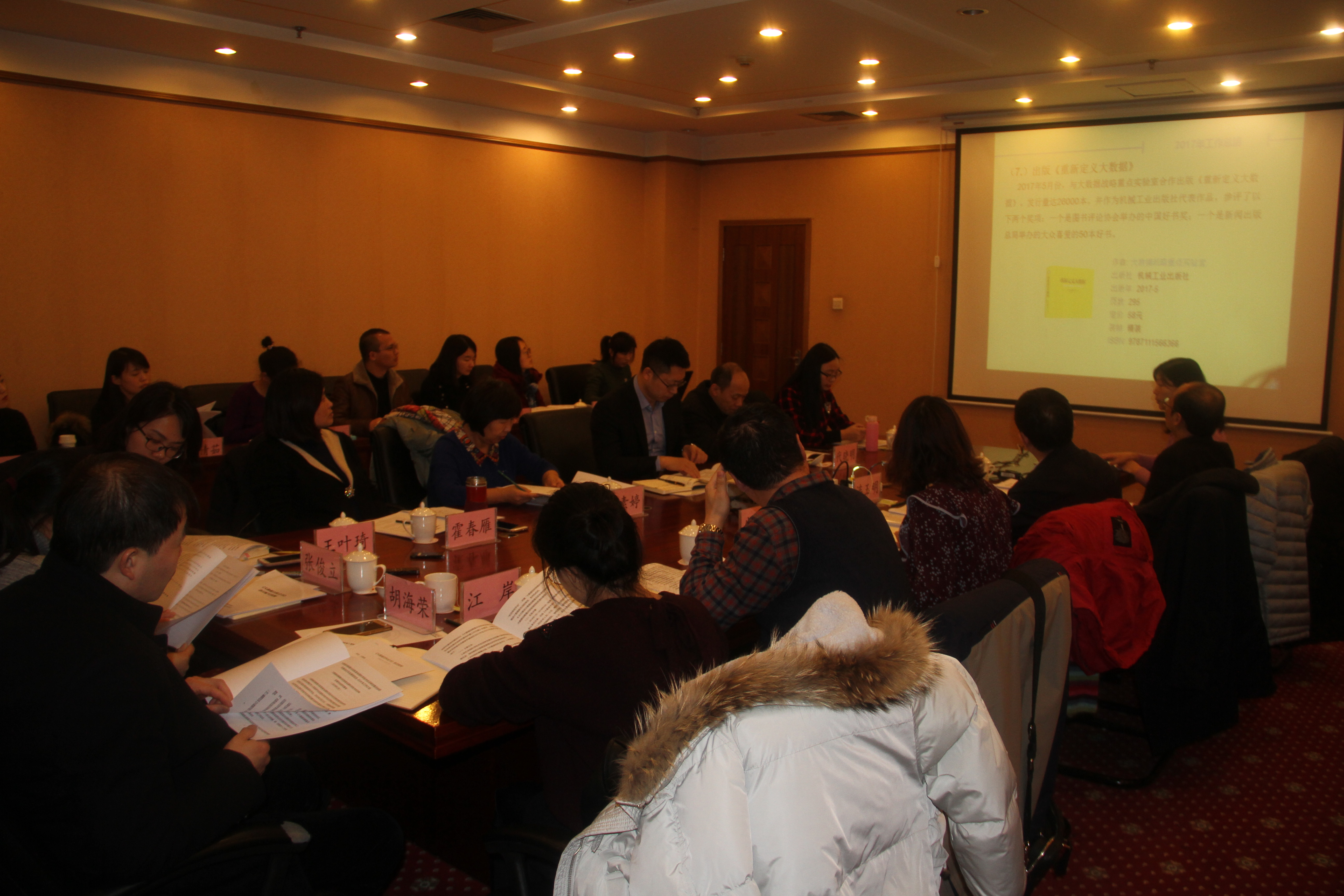 2018年1月31日下午至2月1日上午,大数据战略重点实验室全国科学技术名词审定委员会研究基地第一届理事会监事会第二次会议暨理事会扩大会议在北京召开,全国科技名词委专职副主任裴亚军,贵阳创新驱动发展战略研究院院长、大数据战略重点实验室主任连玉明,北京国际城市发展研究院副院长朱颖慧、张涛,全国科技名词委编审高素婷、代晓明,副编审霍春雁,贵阳创新驱动发展战略研究院院长助理江岸,以及来自全国科技名词委、北京国际城市发展研究院、贵阳创新驱动发展战略研究院相关工作人员40余人参会,会议由裴亚军理事长主持。
