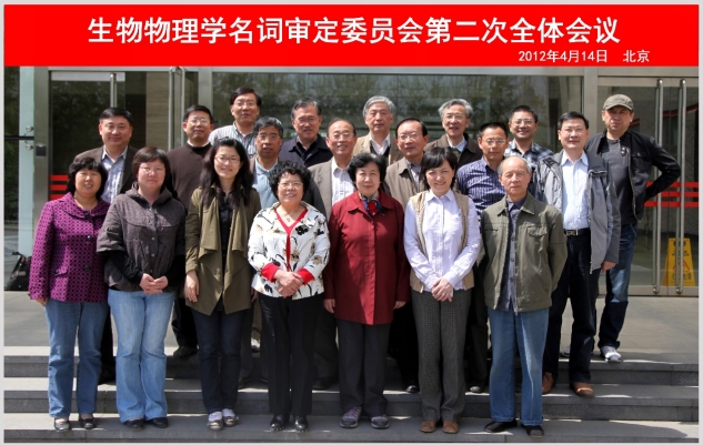 生物物理学名词审定委员会第二次全体会议于2012年4月14日在北京中国科学院生物物理所召开,出席会议的有:沈恂、张志鸿、阎锡蕴、崔宗杰、邓小燕,顾凡及, 胡坤生, 黄有国, 廖福龙,齐翔林,张 凯,孙之荣,唐芳琼,温晓刚, 杨 卓, 周平坤 诸位委员以及审定委员会秘书王悦,全国科技名词委的高素婷。刘杨代表赵保路委员,徐敏代表田捷委员出席了会议,沈钧贤副主任因公出差缺席会议。