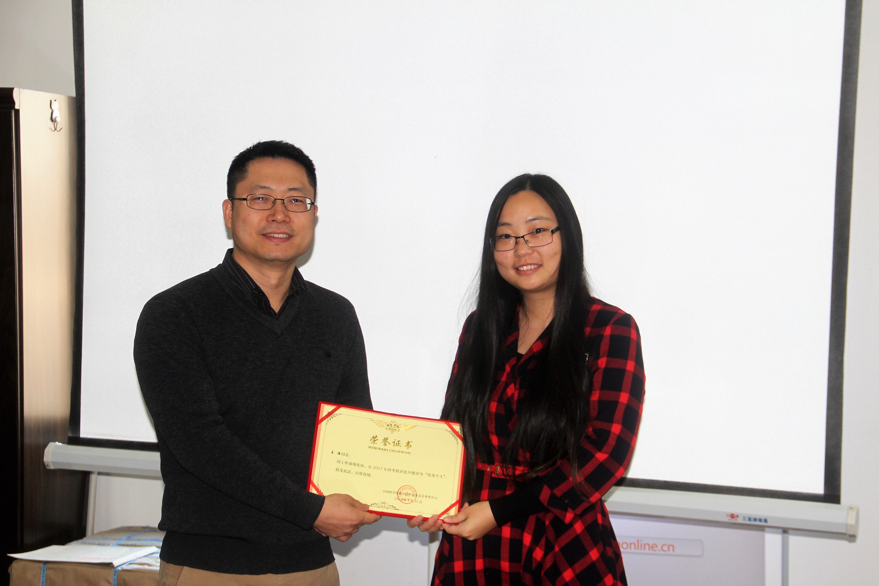 裴亚军为优秀个人颁奖