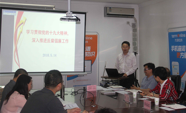 2018年5月14日下午,全国科学技术名词审定委员会事务中心开展反腐倡廉主题教育学习活动。中国科学院文献情报中心党委副书记、纪委书记李春旺,党风廉政建设领导小组办公室主任胡艳,事务中心领导小组全体成员、各部门主任及项目负责人、党支部全体党员参加学习活动。主题活动由事务中心党支部书记张晖主持。