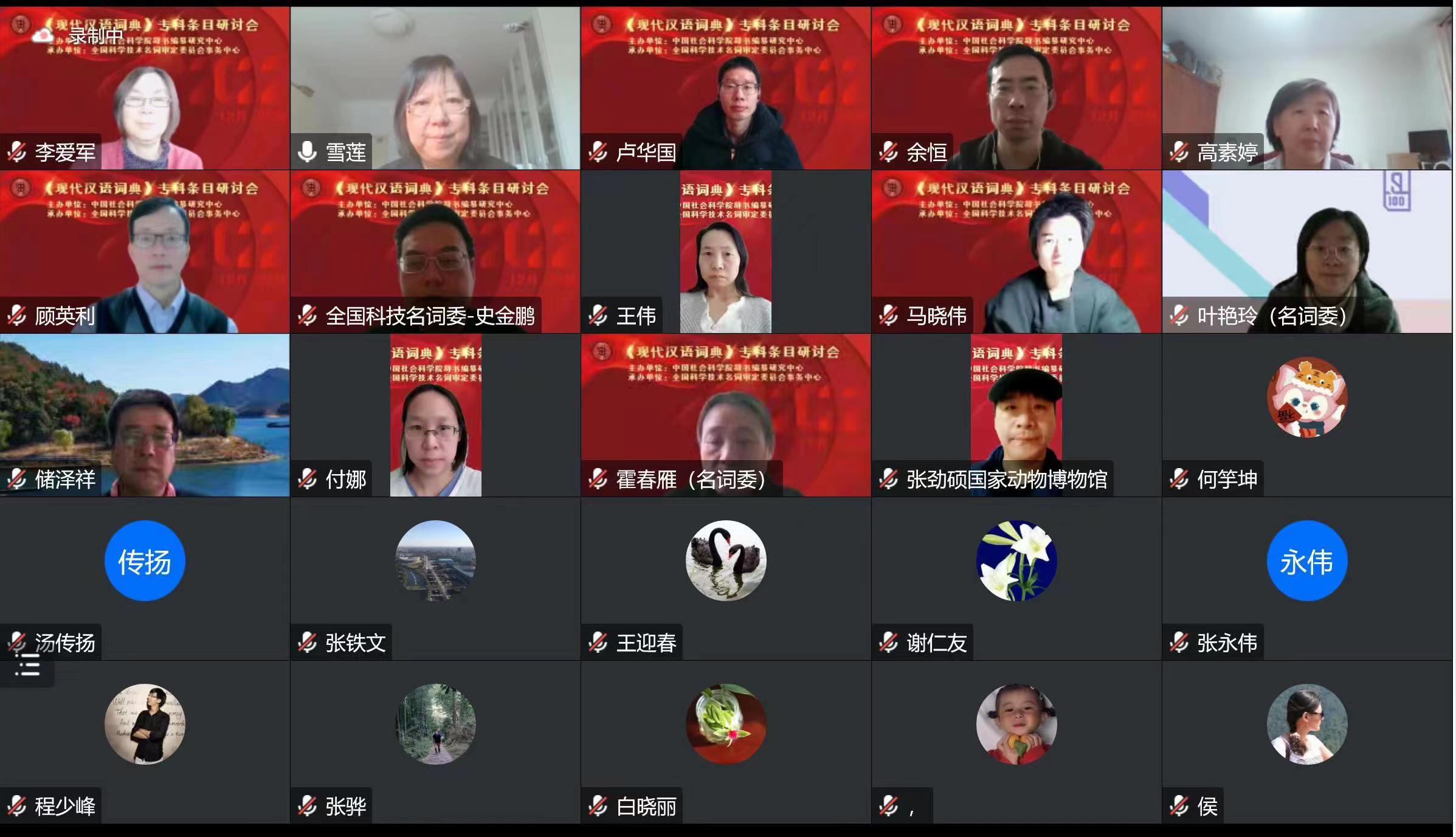 12月25日,中国社会科学院辞书编纂研究中心主办、全国科技名词委事务中心承办的《现代汉语词典》专科条目研讨会在线上举行。会议就《现汉》专科条目的编写要求、组织工作、理论探讨、意见建议等方面内容做了交流。中国社科院语言所党委书记、辞书中心主任陈文学,语言所所长张伯江,全国科学技术名词委专职副主任、事务中心主任裴亚军,语言所纪委书记、副所长李爱军、语言所副所长、辞书中心副主任白晓丽,全国科技名词委事务中心副主任张晖出席会议。辞书中心、全国科技名词委和课题组等50多人参加了本次会议。