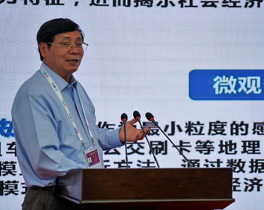 龚健雅院士作了题为《社会感知时空大数据分析》的主题报告。他认为,大数据是创新、竞争和生产力的下一个前沿,也是一个交叉学科。社会感知时空数据包含了多源、异构、海量的数据,同时包含了复杂的社会网络关系。社会感知是借助于各类地理空间大数据研究人类时空间行为特征,并进而揭示社会经济现象的时空分布格局、联系以及演化过程的理论和方法。相比于传统遥感技术主要用于捕获地理空间中的自然现象,社会感知方法则长于发现社会经济现象,从而有效弥补遥感方法的不足。