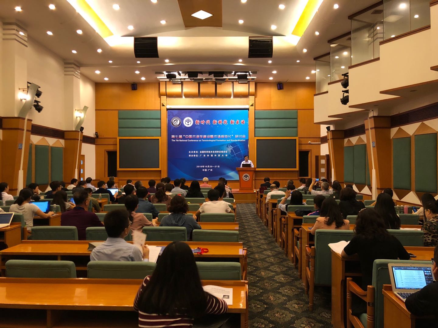 2018年10月19-21日,由全国科学技术名词审定委员会主办、广东外语外贸大学承办的第七届“中国术语学建设暨术语规范化”研讨会于2018年10月在广州举行。会议的主题是:新时代,新科技,新术语。来自北京大学、南京大学、中山大学等机构的80余位代表参加了会议。在会议上,具有不同学科背景,不同研究经历的专家学者们,探讨了术语学这一共同的研究领域。《中国科技术语》副主编刘青、全国科技名词委编审才磊等人与会。