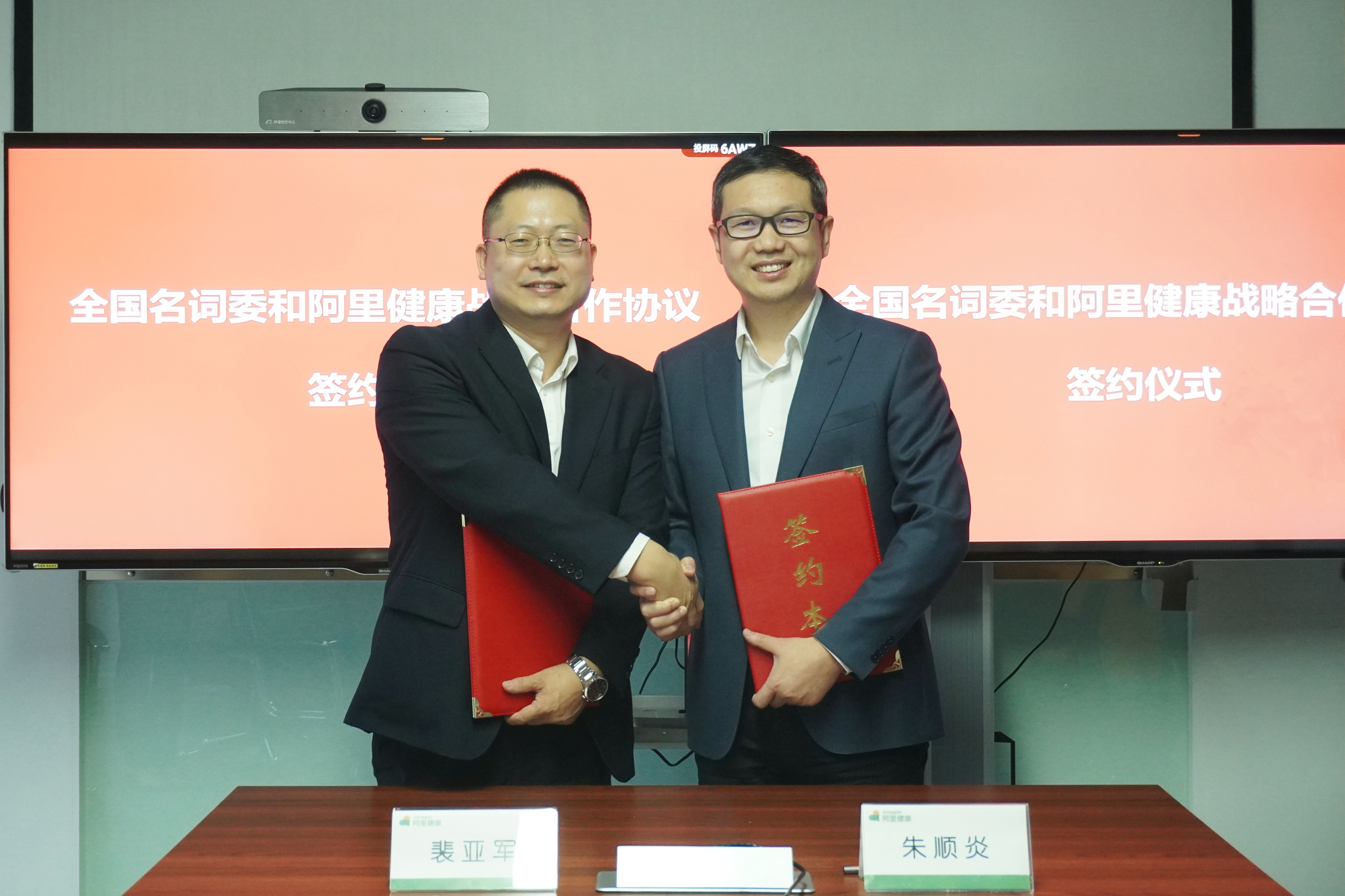 全国科技名词委事务中心副主任代晓明、科研合作处处长王琪、医学专项办公室主任张玉森等,阿里健康CFO等相关负责人一同出席签字仪式。