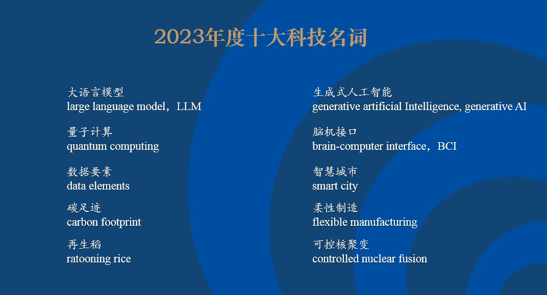 2023年,科技浪潮汹涌澎湃,从人工智能的深入应用到量子计算的前沿探索,从深空探测的壮丽征程再到新能源技术的跨越式发展,每一项创新都谱写着辉煌篇章。新概念、新理论、新技术不断涌现,广泛地应用到了生产、生活的各个领域。一个个专业深奥的科技名词也逐渐被人们所熟知,成为了这个时代新的语言和文化符号。