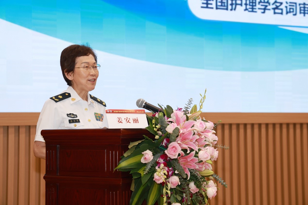 姜安丽主任委员随后做了护理学名词研究工作报告,她全面介绍了海军军医大学团队所开展的护理学知识体系前期研究成果,系统阐述了护理学名词规范研究现状、护理学学科发展现状、护理学学科知识体系等研究成果,并依据广泛的全国专家共识,提出了符合科技名词规范化实际的护理学名词体系和工作架构。她指出,护理学是一门以自然科学、人文社会科学为理论基础,研究人类健康保障、疾病照护和康复过程中的护理理论、方法、技术及应用与发展规律的科学。护理从业人员是医疗卫生机构最大的职业群体,未来乃至长期来看,全球对护士的需求仍有较大的增长空间。结合国内外的研究状况和学界共识,建议分为基础护理学及其他、母婴与儿童护理学、成人护理学、老年护理学、精神卫生与心理护理学、慢病与健康管理学、灾害与急危重症护理学、护理人文社会学、中医护理学、军事护理学等10个分支领域开展审定工作。姜安丽主任指出,全国护理名词委是一个专家工作组织,是一个为学科发展做实事的组织,是一个需要每个成员都为学科贡献自己的忠诚、智慧、才学和精力的组织。她对今后工作提出了五点期待:高规格、严标准做好分委会的组织建设工作;科学严谨开展编写与审定培训工作;各级审定委员会和编写委员会要密切合作以提高工作效率和质量;广泛调研听取多方意见建议以保证专业水准和公信力;坚定地立足中国式现代化护理实践并学习国际护理先进的方法与技术,构建的既能充分体现中国特色、中国风格,又能为国际社会所理解和接受中国护理名词体系,从而推动我国护理学科与国际接轨,提升学科的国际影响力。