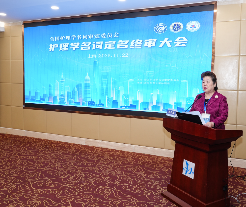 2025年11月22日,全国护理学名词审定委员会定名终审大会在海军军医大学隆重举行。本次会议是继定名一审大会后护理学名词审定工作的关键环节,标志着我国护理学名词体系规范化建设取得里程碑式进展。出席本次会议的领导和专家包括全国科技名词委、海军军医大学、人民卫生出版社、中华护理杂志社相关领导,以及护理学名词委顾问、副主任委员、委员,护理学名词编写委员会副总主编,各分委会主任委员、主编和秘书,共计52人。会议由海军军医大学护理系主任桂莉教授主持。