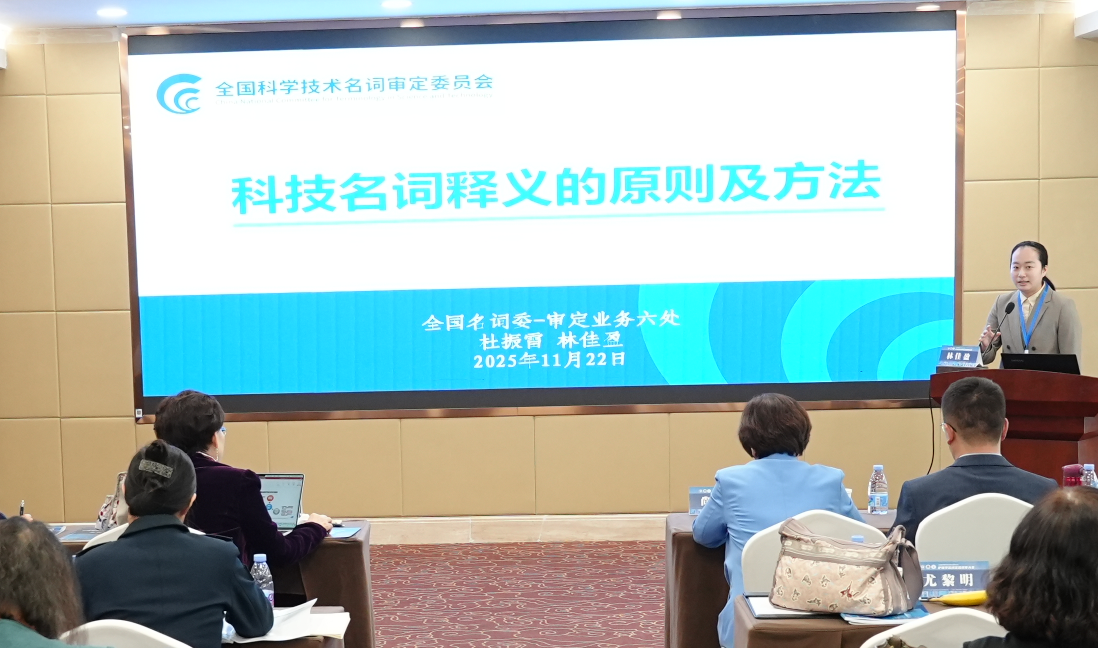 为确保后续工作质量,会议专门安排了释义撰写业务培训。全国科技名词委事务中心业务六处林佳盈项目主管为与会专家做了题为“科技名词释义的原则及方法”的专题讲座,明确了后续定义工作的技术规范与要求。