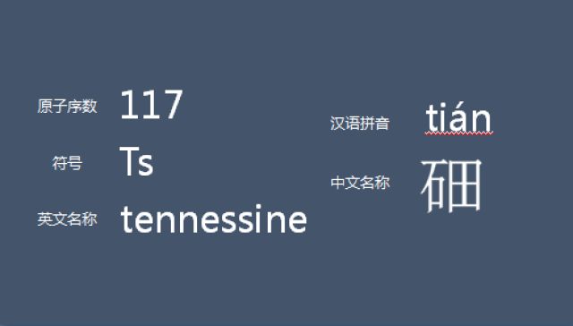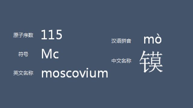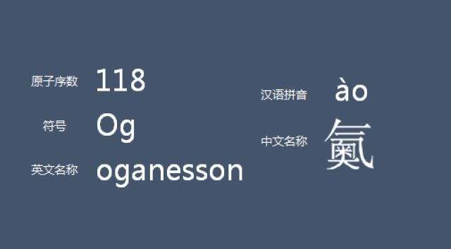 全国科技名词委专职副主任裴亚军介绍,此次公布的4个新元素名称主要源于地名和科学家姓氏。它们分别为:113号nihonium,源于日本的国名Nihon;115号moscovium,源于俄罗斯莫斯科的市名Moscow;117号tennessine,源于美国田纳西州的州名Tennessee;118号oganesson,源于俄罗斯核物理学家尤里·奥加涅相的名字Yuri Oganessian。