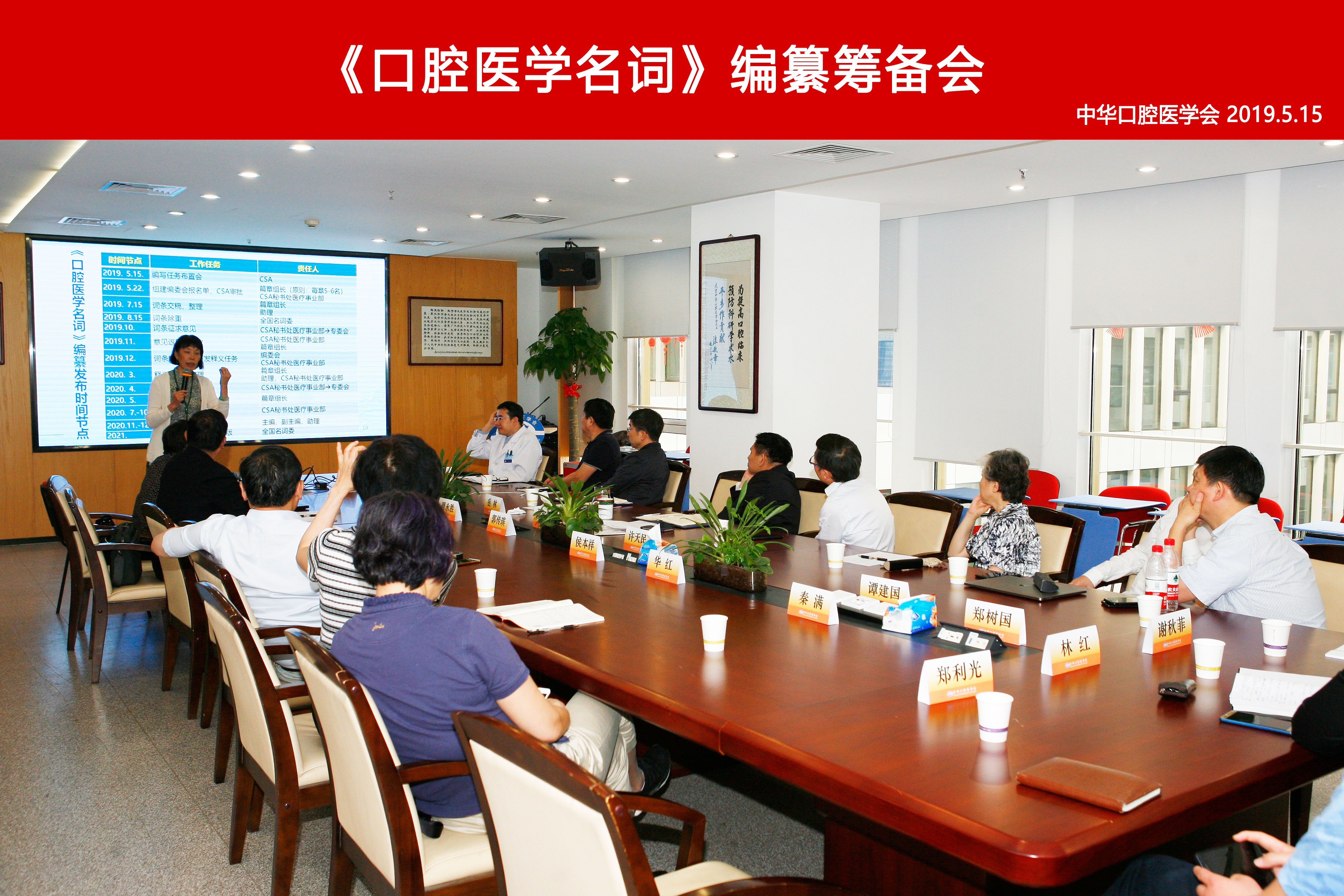 2019年5月15日下午,《口腔医学名词》审定编写筹备会在中华口腔医学会召开。出席会议的有中华口腔医学会会长俞光岩、秘书长岳林、秘书侯敏及23位专家,全国科学技术名词审定委员会高素婷,中华医学会医学名词审定委员会秘书长张玉森。会议由俞光岩会长主持,他强调了科技名词审定的权威性和重要性。高素婷介绍了科技名词审定工作和编写要求,对编写审定工作中可能出现的问题做了完整、宏观、简明的指导。张玉森以儿科学为例介绍了医学名词审定编写经验,对学科名词体系建设及系统选词工作给与了明确指导。
